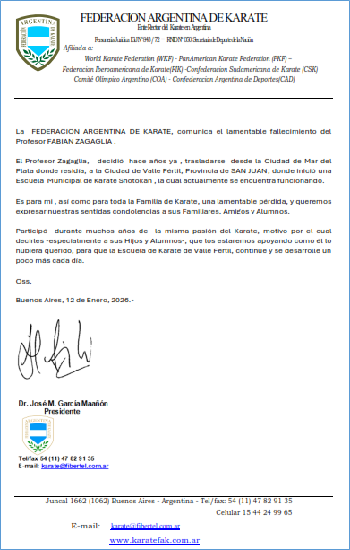 A la Federacion Argentina de Karate: