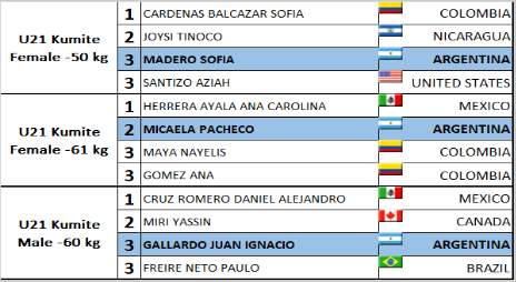 Female -61 Kg Sofía Madero se consagró con la de BRONCE en la categoría U21 -50 kg y Juan Ignacio Gallardo obtuvo el BRONCE, en U21 Kumite Male -60 Kg
